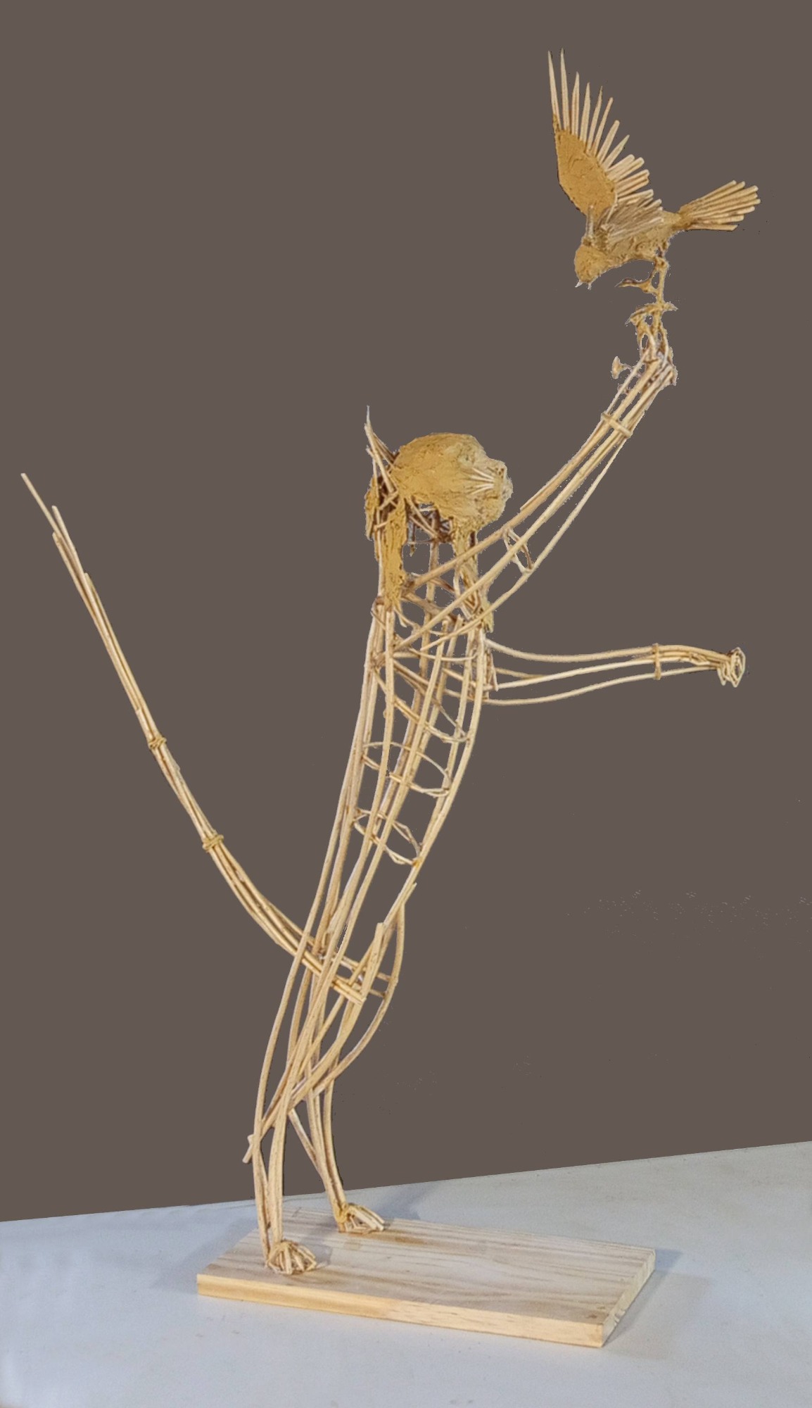 Oeuvres réalisées en osier, bois et pâte à bois